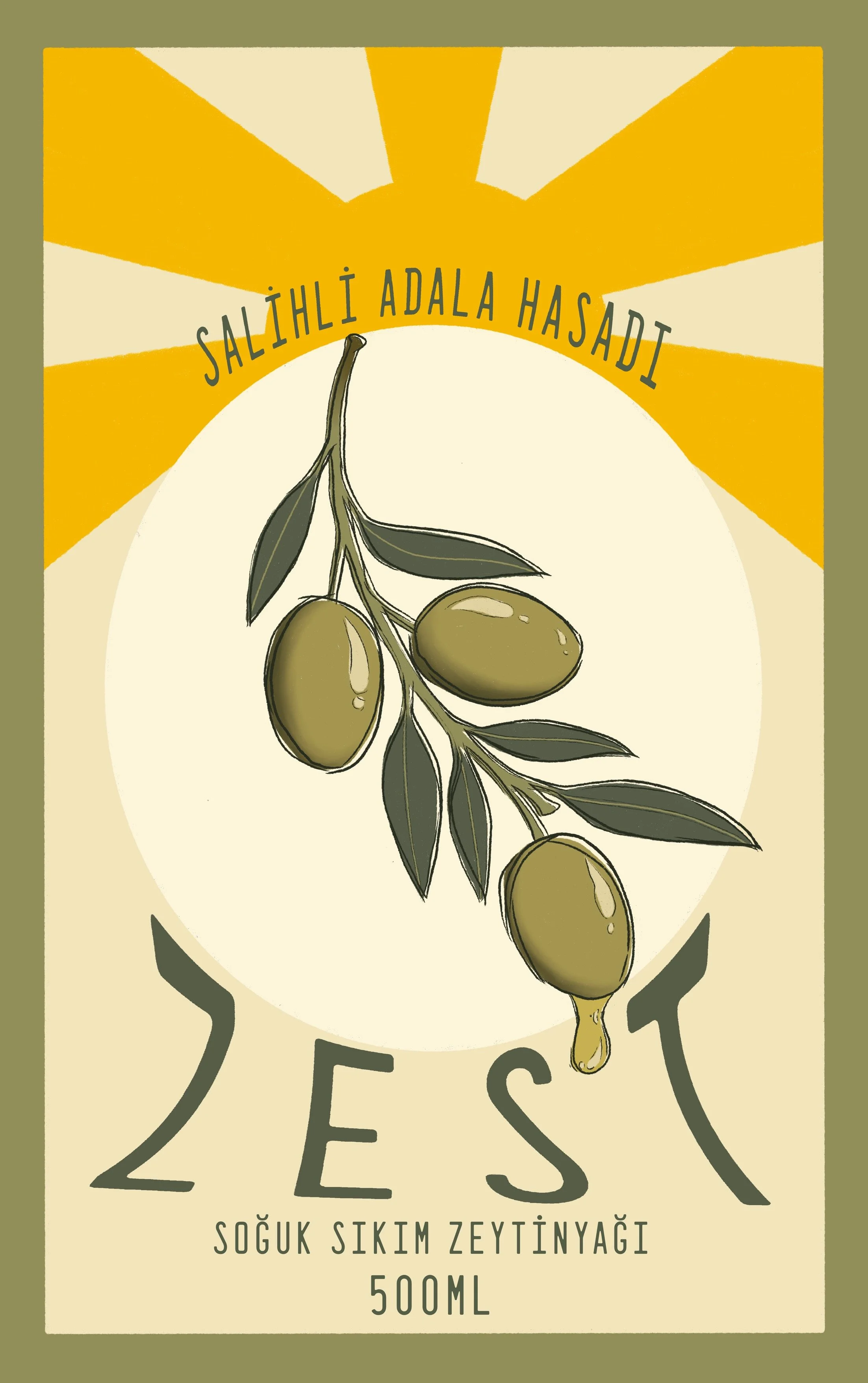 Zest, dıgıtal ıllustratıon, 2021Bottle label design for the boutique, family-owned olive oil brand Zest, located in Turkey.